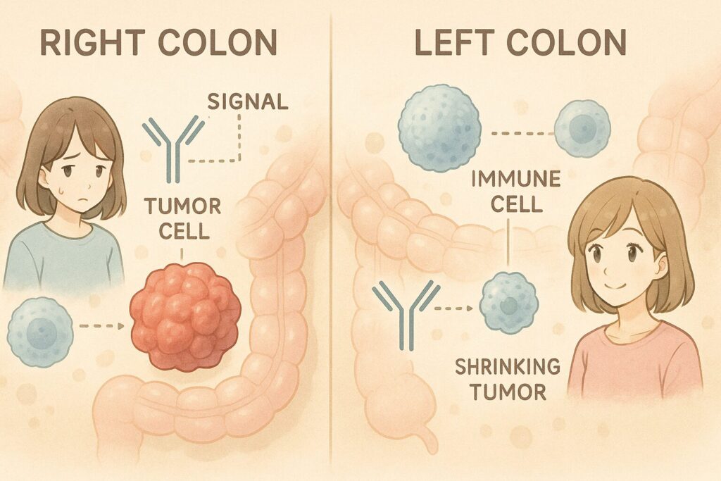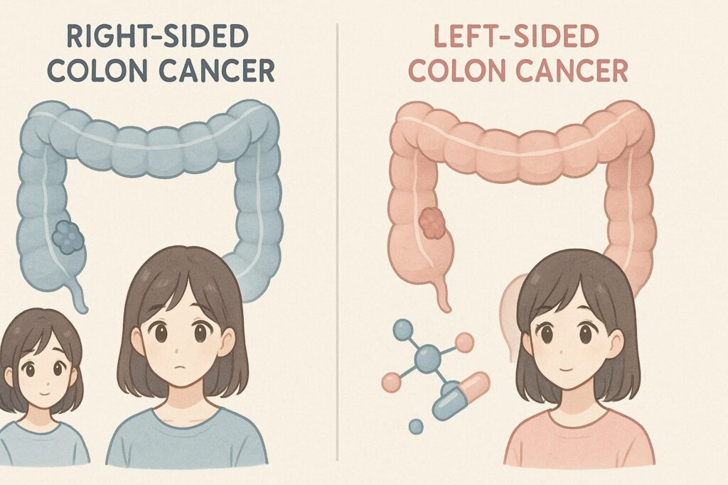 大腸癌は「できた場所」によって、治療の考え方が少し変わることをご存じでしょうか。右側大腸癌と左側大腸癌では、化学療法の効き方や使われる薬が異なる場合があります。
