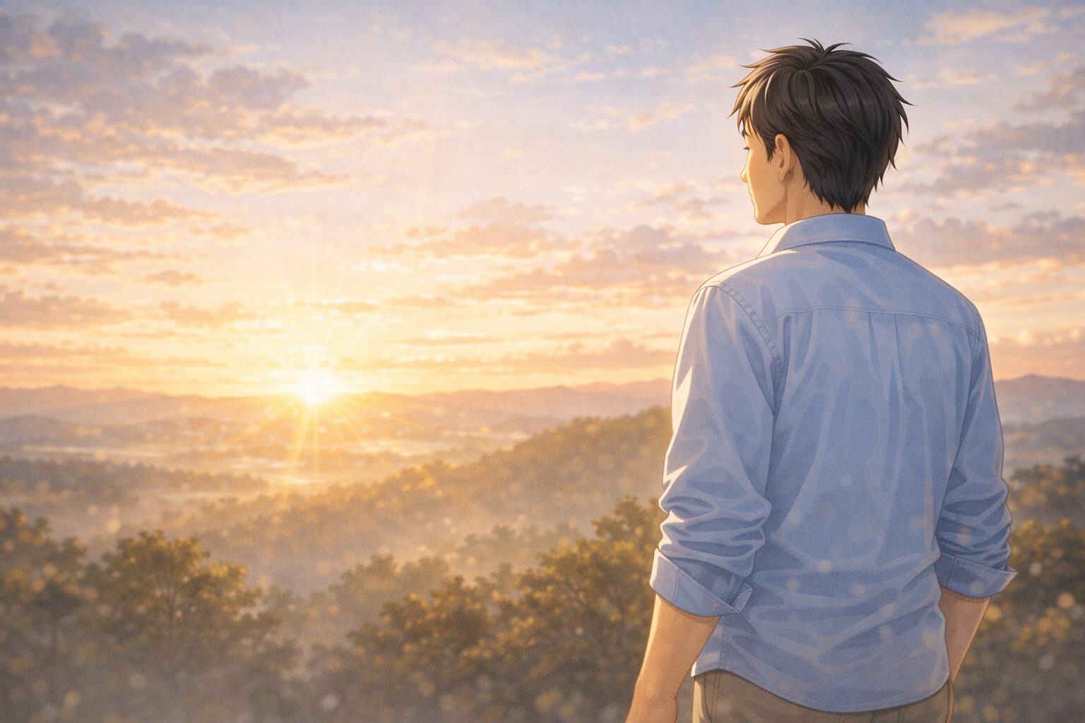 朝日を見つめる男:(画像はイメージです)きのじーパパ日記作成