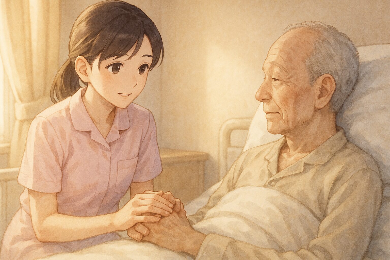 という言葉は、負担に感じることがあります。大切なのは“何をするか”よりも、“そばにいる姿勢”です。患者さんが口数が少なくても、黙って手を握るだけで十分なケアになります。
