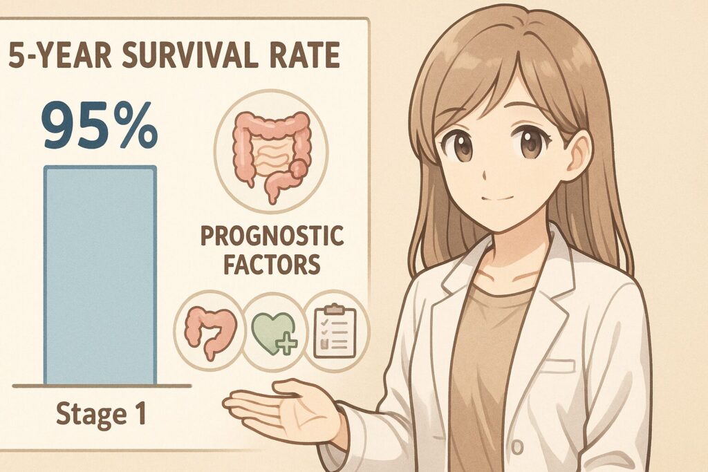 ステージ1の大腸癌は「比較的早い段階で見つかった癌」とされ、適切な治療を行えば良好な予後が期待できる状態です。