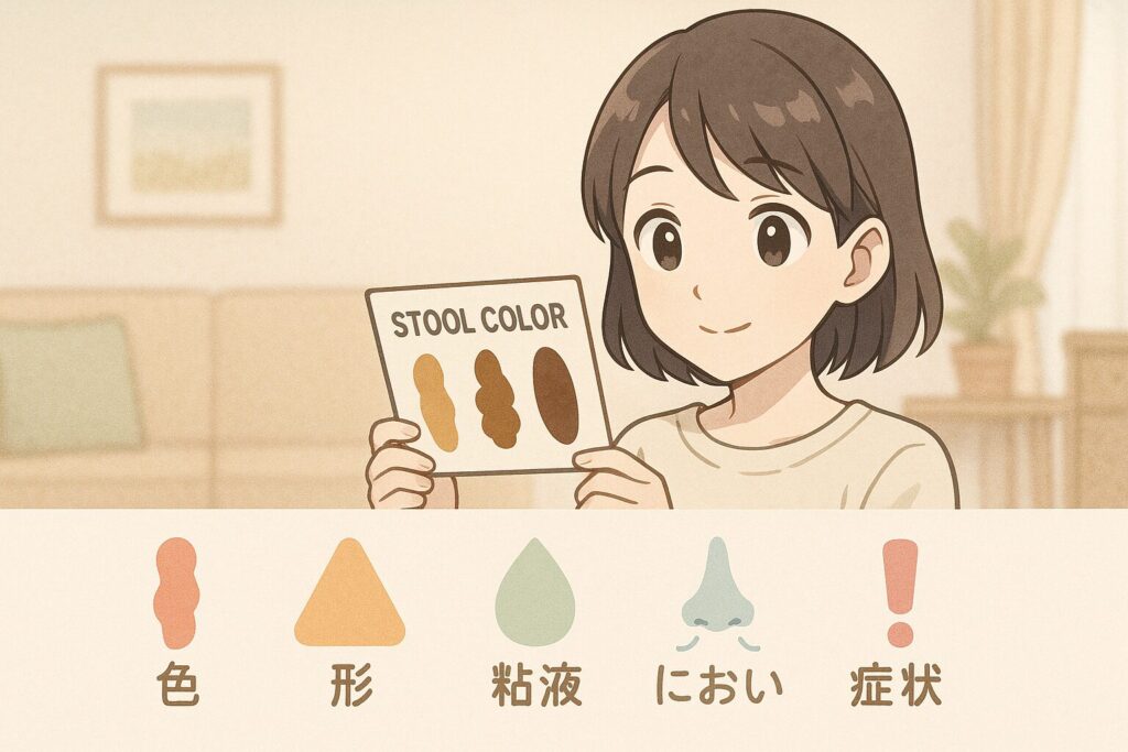 便の変化は単独で判断できないからこそ、「色 × 形 × におい × 体調」をセットで見ることが大切でした。