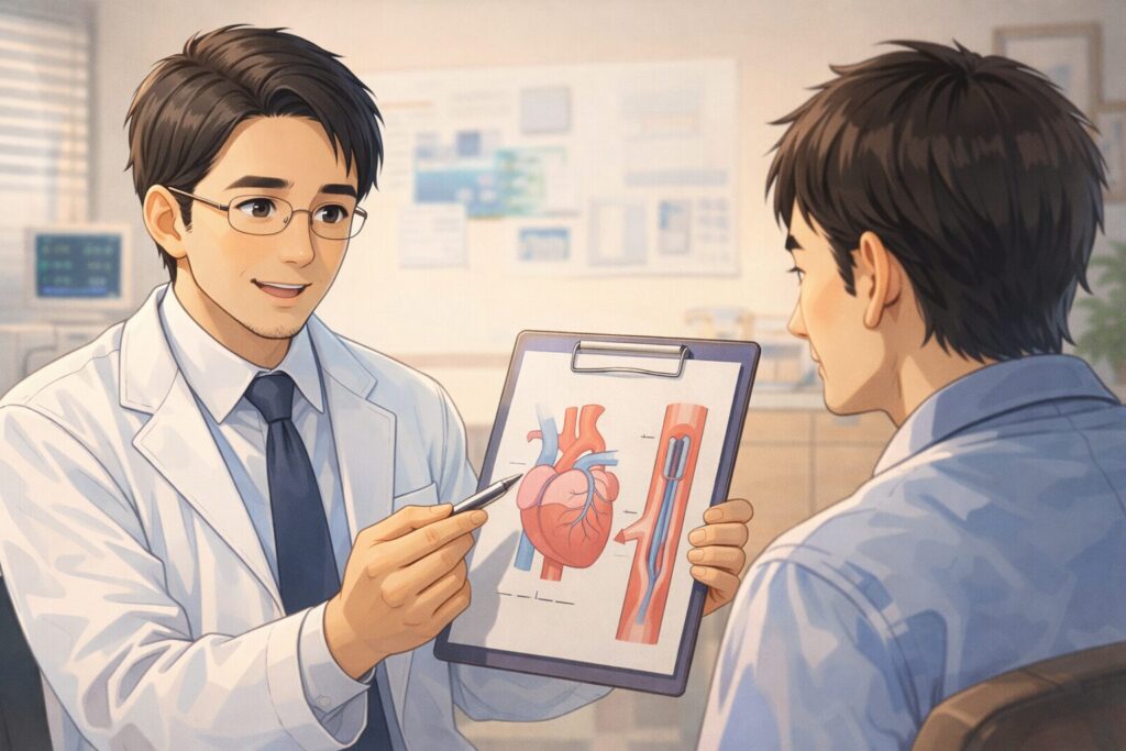 この記事では、心臓カテーテル検査で起こりうる後遺症や合併症、その頻度や注意すべきサインをやさしく整理して解説します。