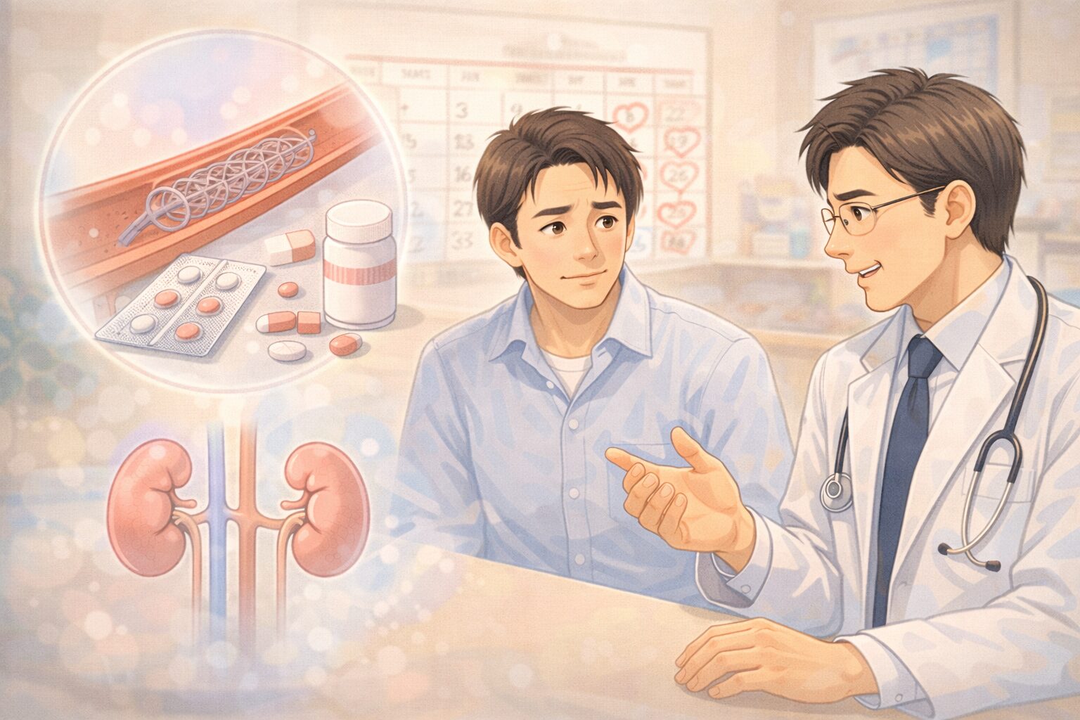🔵 ステント治療後の抗血小板薬や生活上の注意点は、自己判断せず医療者と相談することが大切