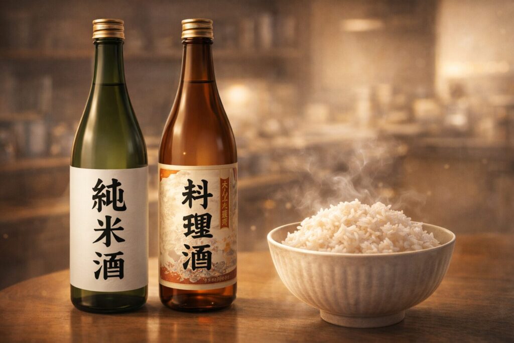 次は、「料理酒と純米酒の違い」について整理しながら、炊飯に向いている選び方を見ていきましょう。